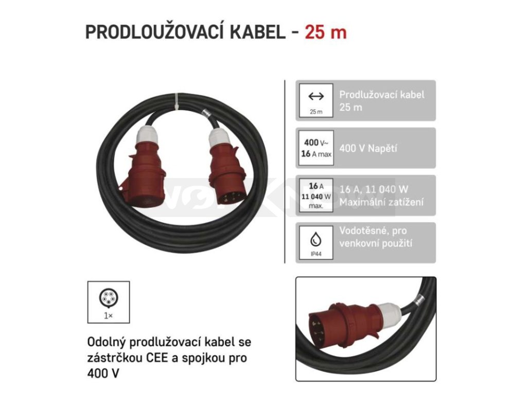 Gumový prodlužovací přívod 25 m na 400 V~ slouží k prodloužení elektrické energie tam, kam pevná zásuvka nedosáhne.