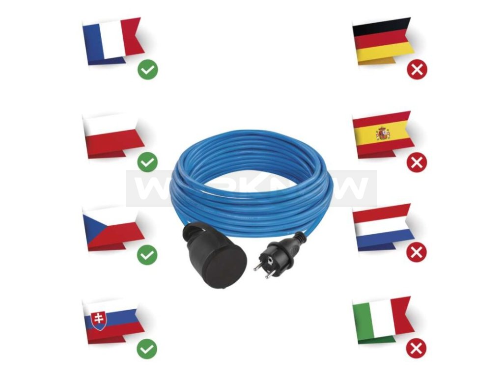 Ať už pracujete v parném letním dni nebo v časech mrazu s teplotami hluboko pod nulou, pak s prodlužkou Weatherproof budete mít přísun elektřiny na dosah. Svou funkci zvládne vykonávat ve velkém rozsahu pracovních teplot od -35 °C  až do + 60 °C. Modrý kabel má navíc zvýšenou odolnost proti UV záření a oproti gumovému kabelu nezapáchá.