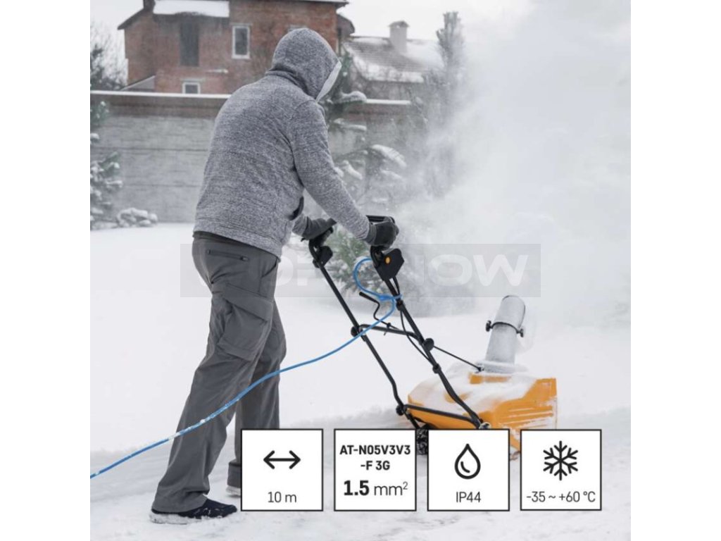 Mrazuvzdorný kabel s plastovou izolací - pro střední namáhání, v prostředí obyčejném, studeném i vlhkém (odolný proti ztíženým klimatickým podmínkám a teplotám až do -35˚C). Je odolný vůči oleji a UV záření. Krytí IP44 umožňuje použití ve venkovním prostředí.