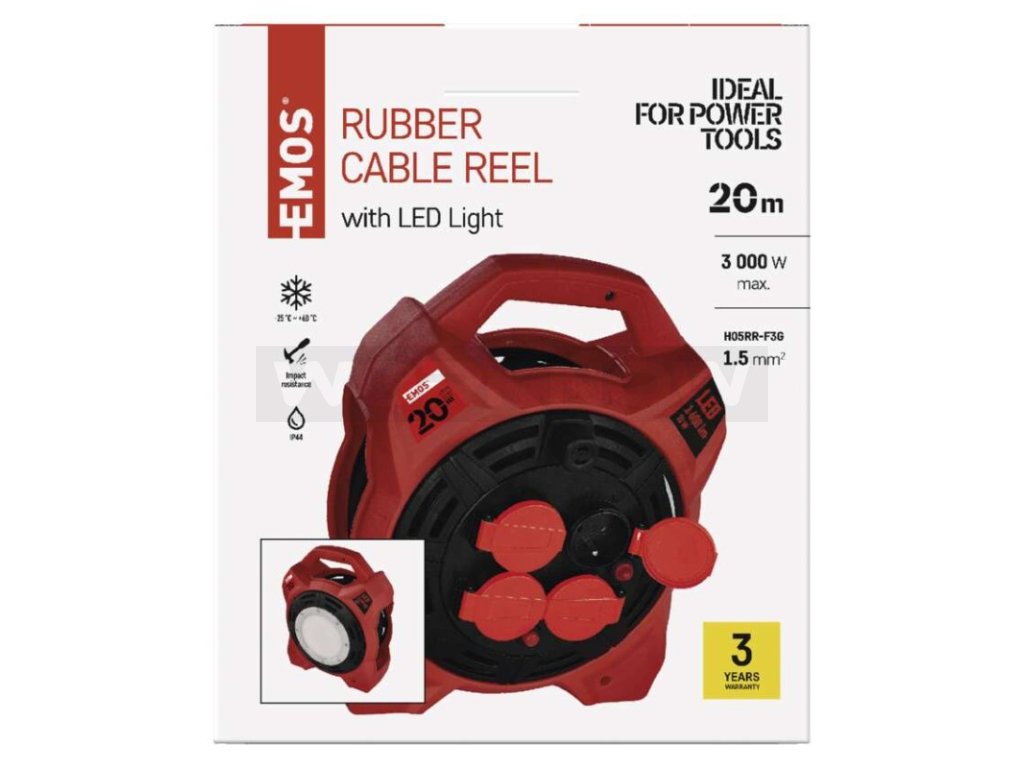 Odolný pryžový kabel H05RR-F3G o délce 20 metrů pohodlně zajistí dostupnost elektřiny všude tam, kde ji potřebujete. Navíc odolá mechanické námaze a obstojí i v mokrém prostředí. Pokud hledáte spolehlivého parťáka, který vám vydrží mnoho let, vsaďte na kvalitní navíjecí buben EMOS s prodlouženou tříletou zárukou.