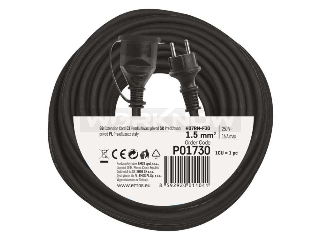 Venkovní prodlužovací kabel 30 m / 1 zásuvka / černý / guma-neopren / 230 V / 1,5 mm2 P01730