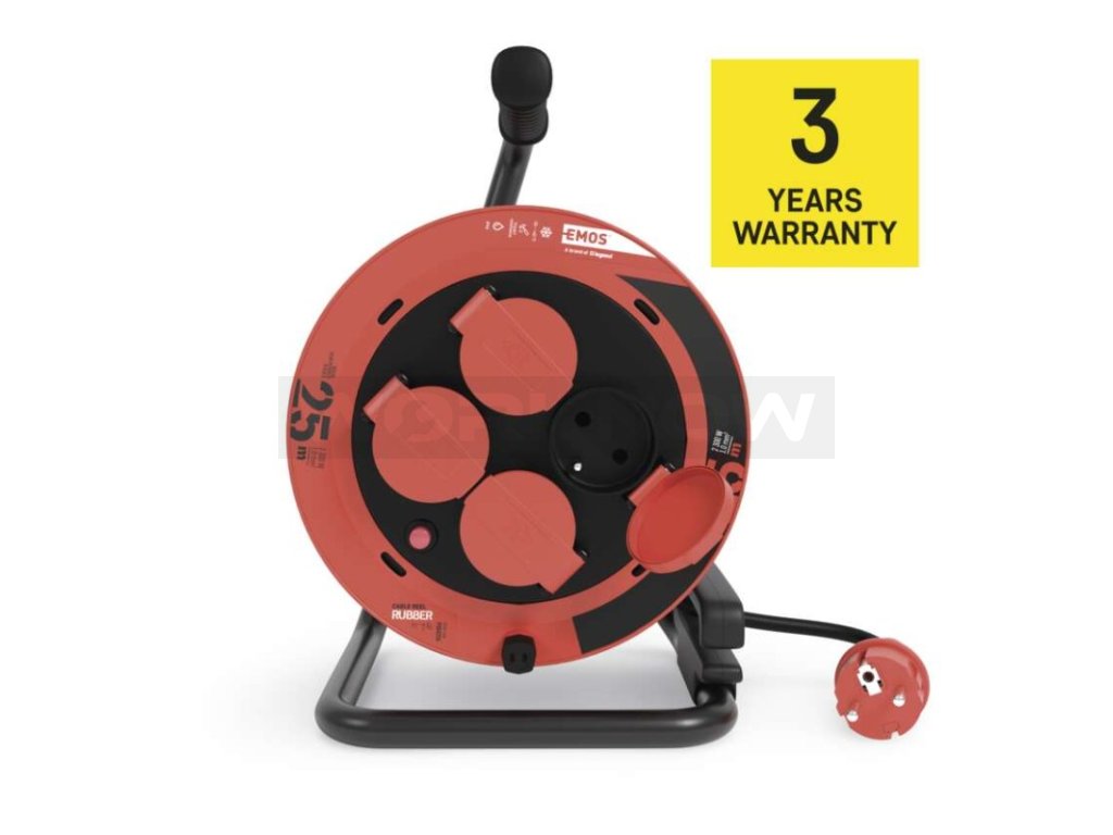 Max. zátěž plně rozvinutého kabelu je 10 A/ 2 300 W. Krytí IP44 umožňuje použití ve venkovním prostředí.