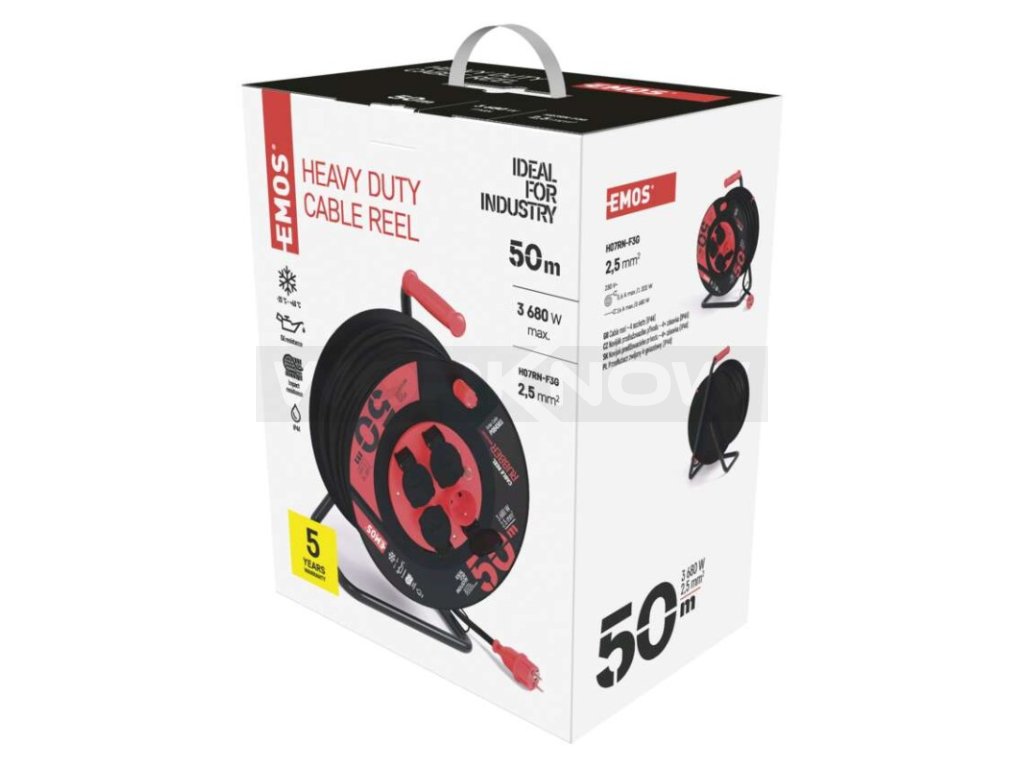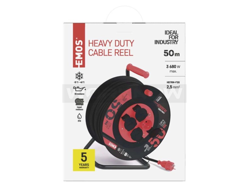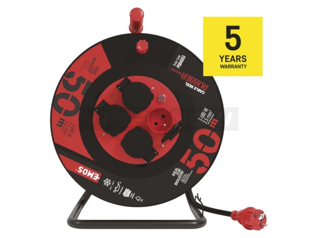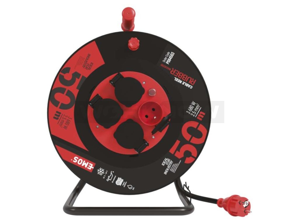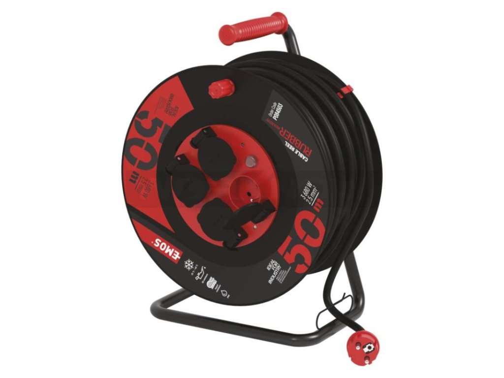 Běžné prodlužovací kabely na bubnu mají průřez vodiče 1,5mm2 či nižší a izolaci z PVC, což omezuje rozsah použití. Na rozdíl od běžné produkce se tento produkt firmy EMOS liší jak větším průřezem vodiče, který umožňuje bezproblémový provoz i s výkonově náročnějšími zařízeními jako jsou např. svářečky, stavební vrátky, kompresory atp., tak především díky použití kvalitní gumy jako izolace a následně ještě svrchní vrstvy z chloroprenu zaručuje vysokou mechanickou odolnost, ohebnost kabelu a bezproblémovou funkčnost v širokém spektru vnějších teplot.