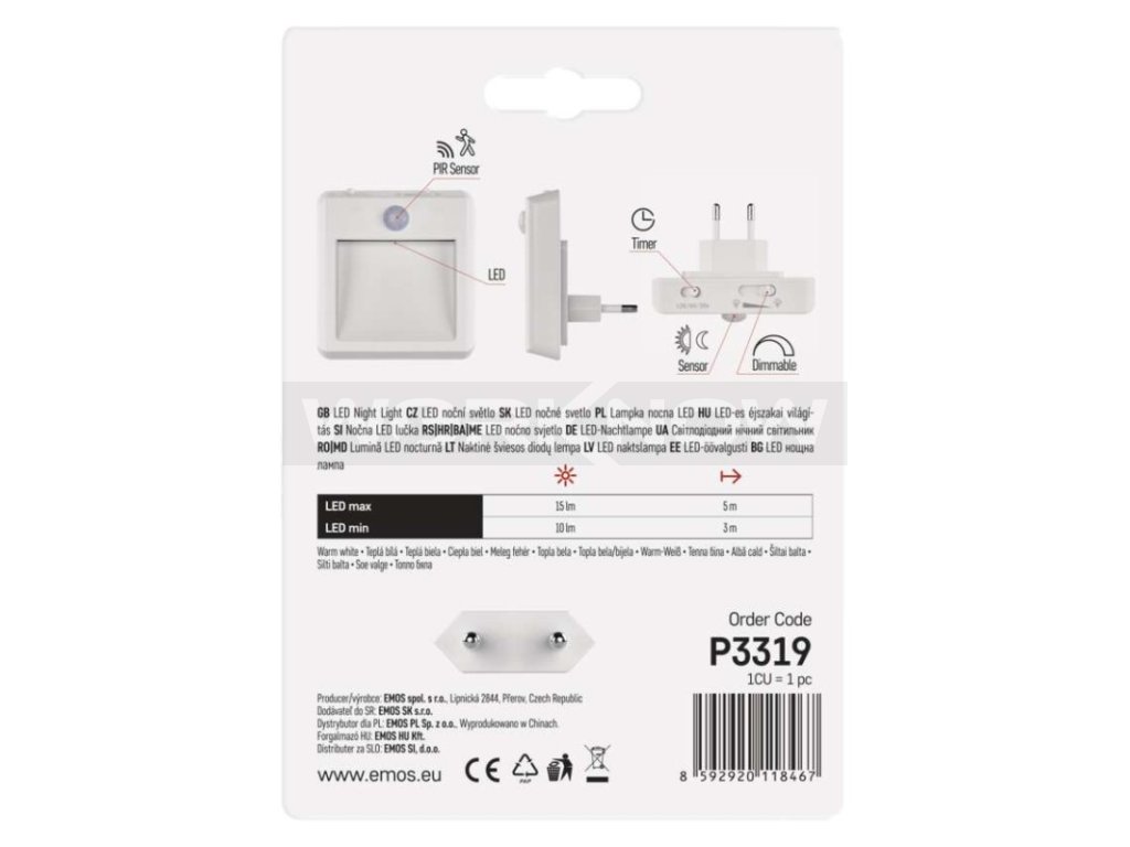 LED noční světlo P3319 s pohybovým čidlem do zásuvky