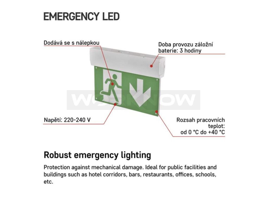 | Výstupní výkon v nouzovém stavu: | 1 W |
