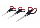 Nůžky s nerezovým ostřím 70 mm, v čepeli nůžek otvírák, poplastované ergonomické rukojeti pro vyšší komfort při práci, v rukojeti zubové čelisti pro variabilní použití, např. otevírání pet lahví, drcení skořápek ořechů atd. univerzální použití na pvc, kůži, lepenku, v domácnosti i profesionální práci.