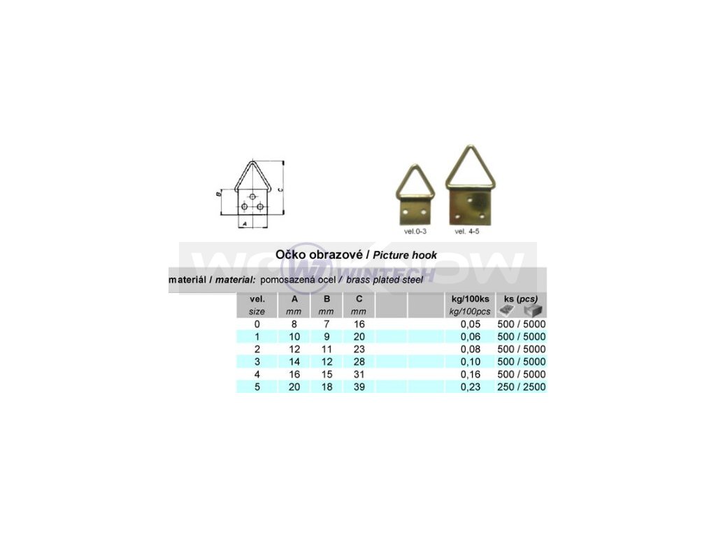 Očko na obrazy-trojhranné 10x9x20mm