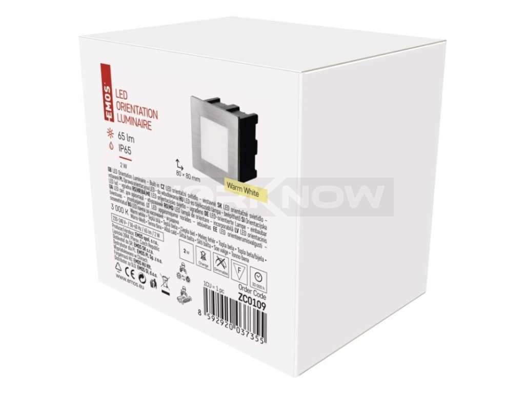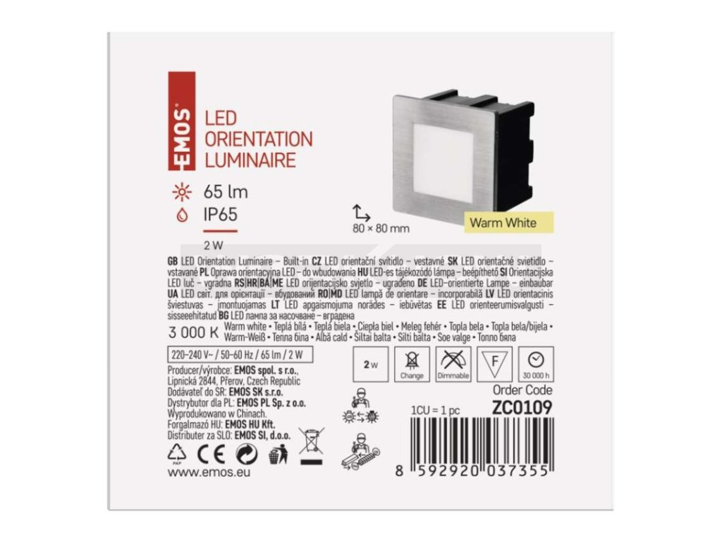 LED orientační vestavné svítidlo AMAL 80×80, 2W teplá bílá,IP65 ZC0109