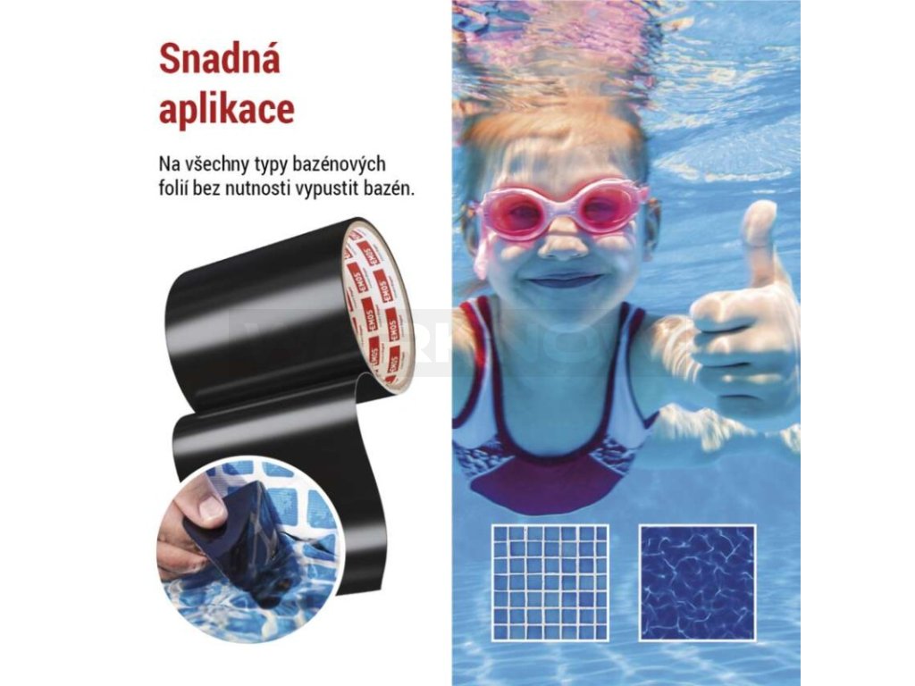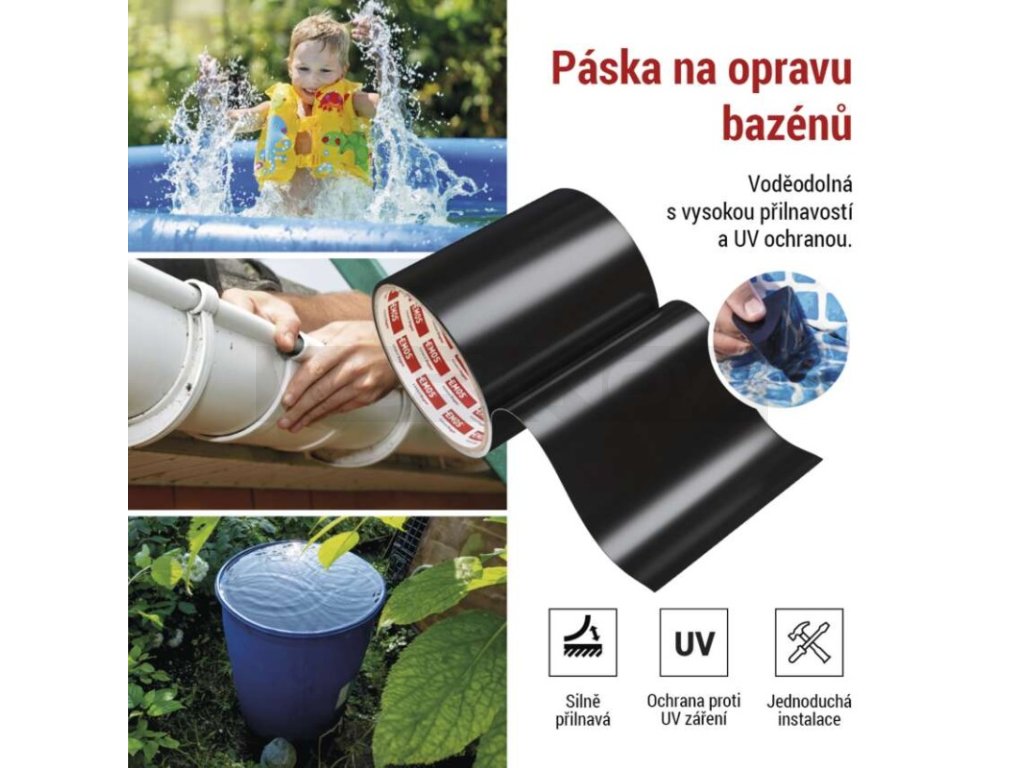 - Černá, voděodolná páska na opravu drobných trhlin a děr nejen v bazénu