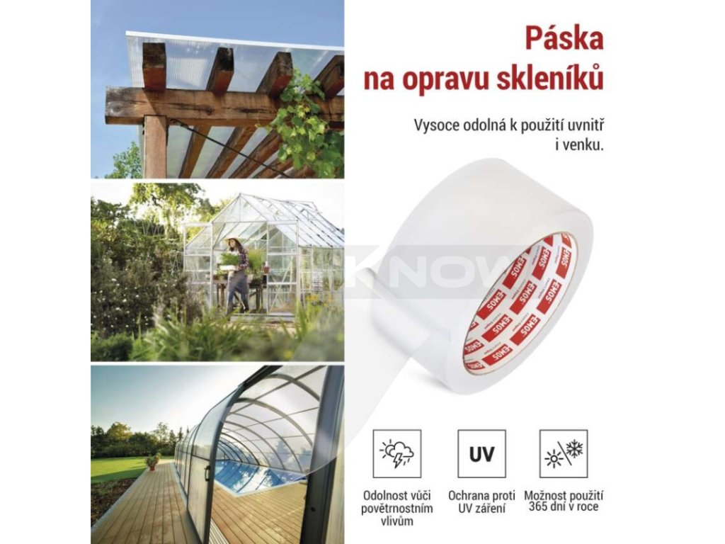 - Silně lepící páska, vysoce odolná pro opravu nejen skleníků