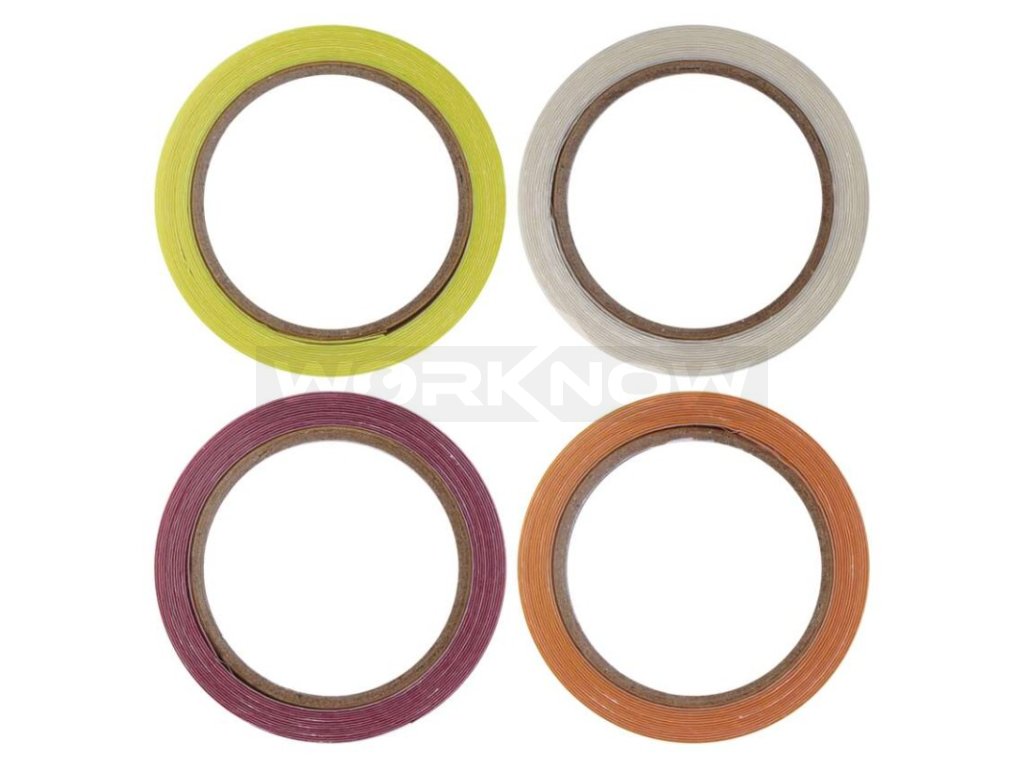 Pásku nabízíme v mixu barevných variant, konkrétně ve stříbrné, žluté, oranžové a červené barvě.