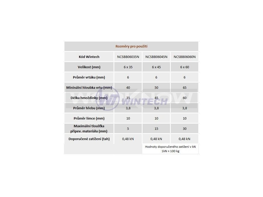 WINTECH Box 5 Natloukací hmoždinky 6x45 150ks nyl