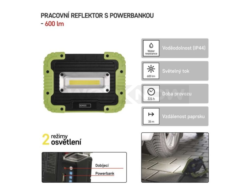 Na rozdíl od velkých stavebních reflektorů vás nijak neomezuje hledáním zásuvky a délkou svého přívodního kabelu (žádný totiž nemá). Doma nebo v autě ho jednoduše nabijete a potom už si jen vychutnáte 2,5–3,5 hodiny poctivé dávky světla, kdekoli potřebujete.