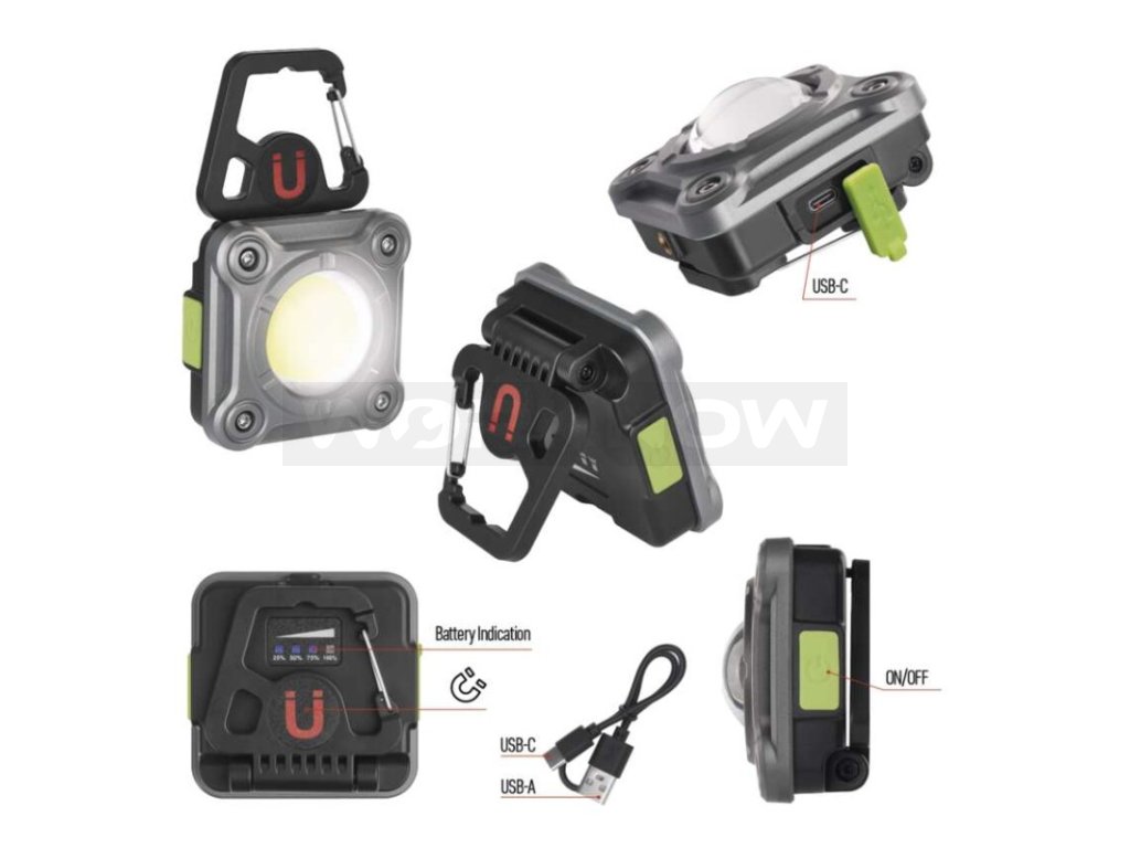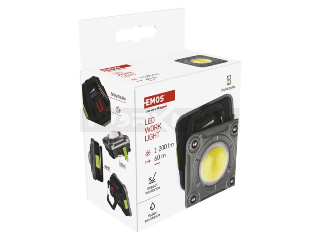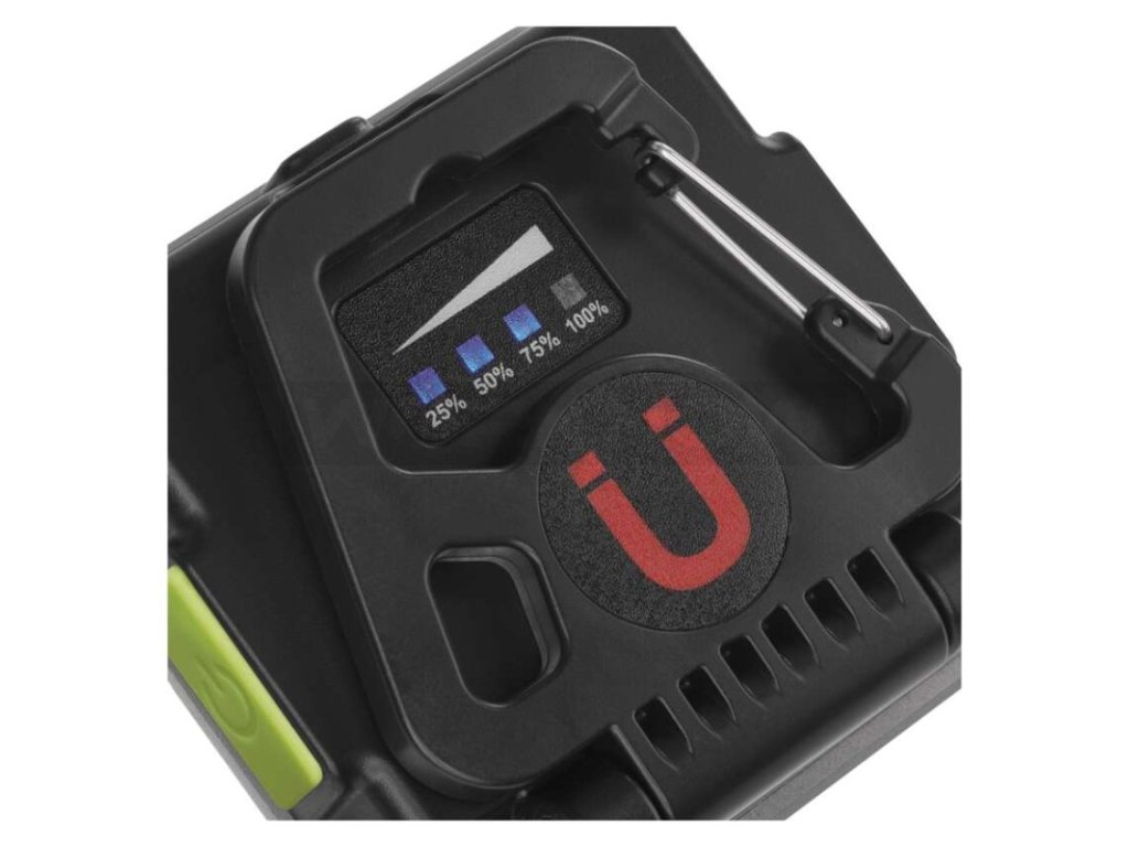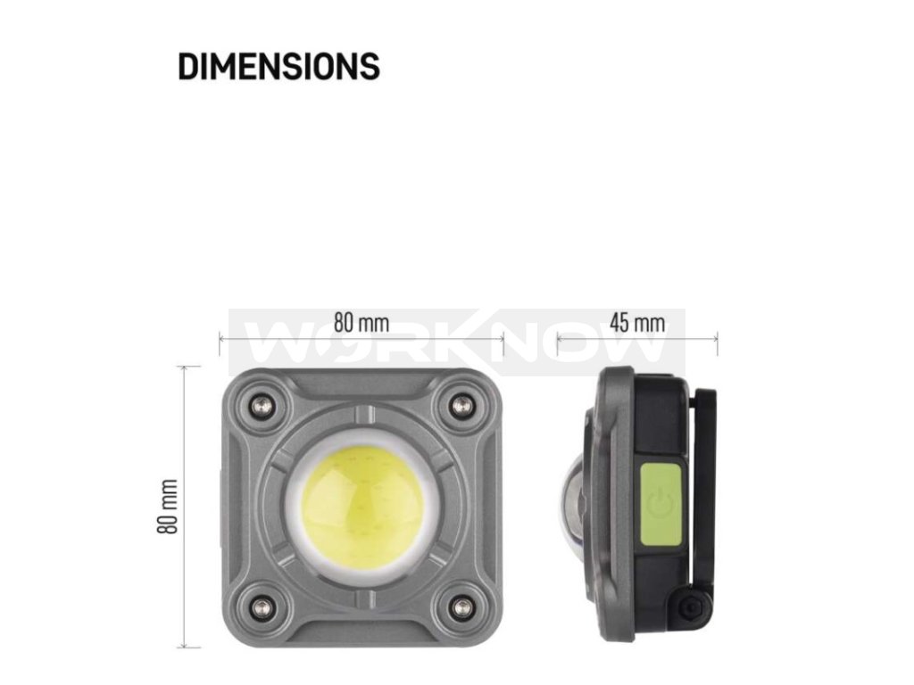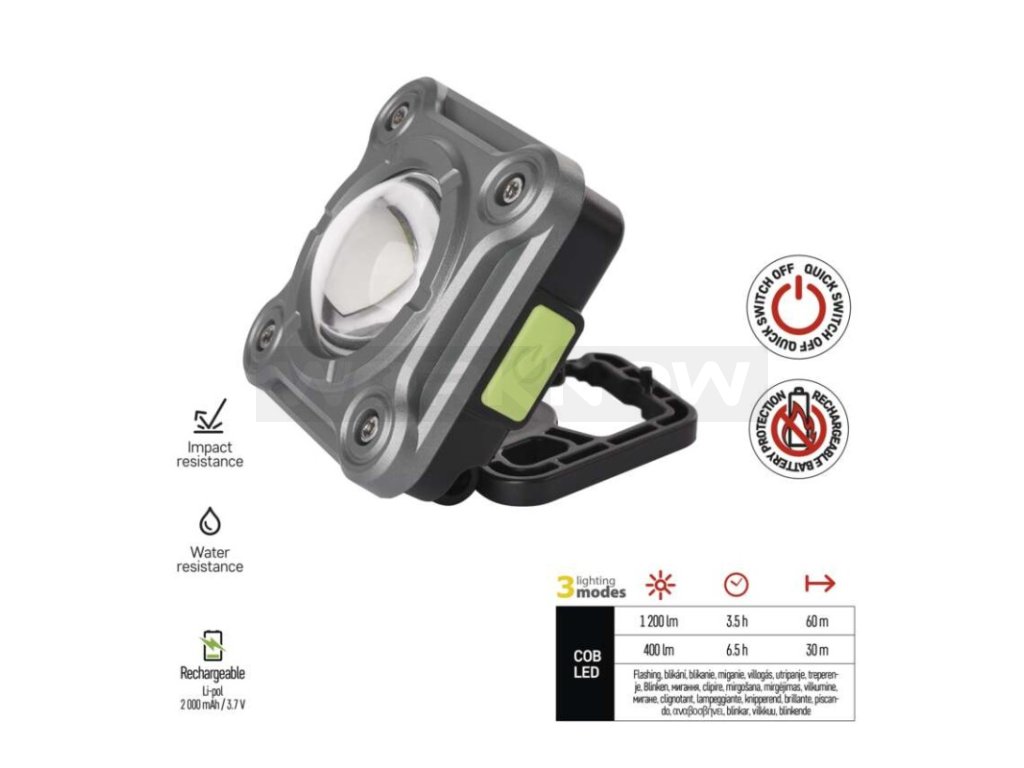 Oproti běžným pracovním svítilnám má mnohem vyšší světelný tok (až 1 200 lm), dosvit až 60 metrů a také 3 režimy svícení (COB LED - 1 200/400 lm, blikání).