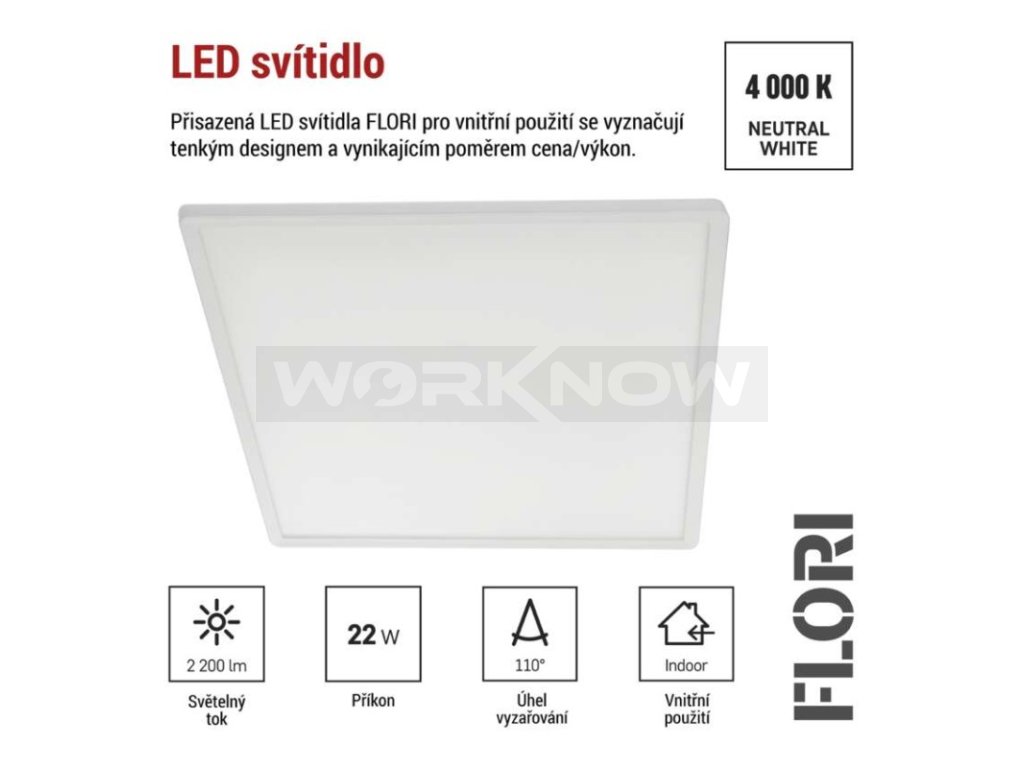 LED přisazené svítidlo FLORI čtvercové, bílé, 22W, neutrální bílá