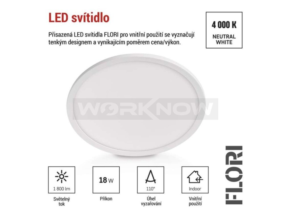 LED přisazené svítidlo FLORI kruhové, bílé, 18W, neutrální bílá