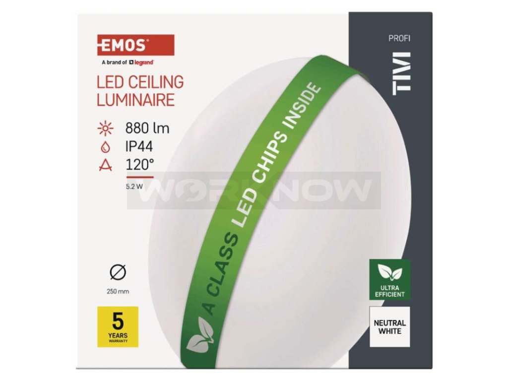 LED přisazené svítidlo TIVI, A CLASS, kruhové bílé 5,5W, IP44, neutrální bílá