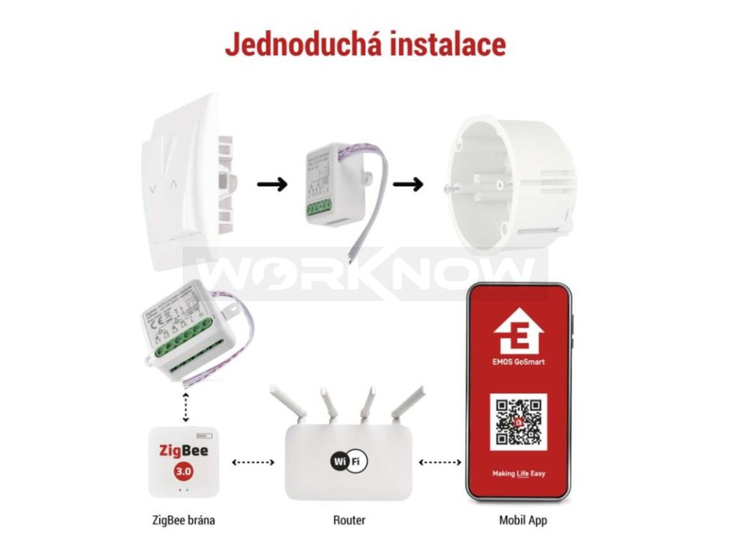 Modul propojte se ZigBee bránou a spárujte ho s mobilní aplikací EMOS GoSmart, která je dostupná pro OS Android i iOS. Díky tomu, že jsou moduly trvale napájeny, fungují zároveň jako prodlužovač vašeho Zigbee signálu, díky čemu můžete spravovat stále větší počet ZigBee zařízení v jedné síti.