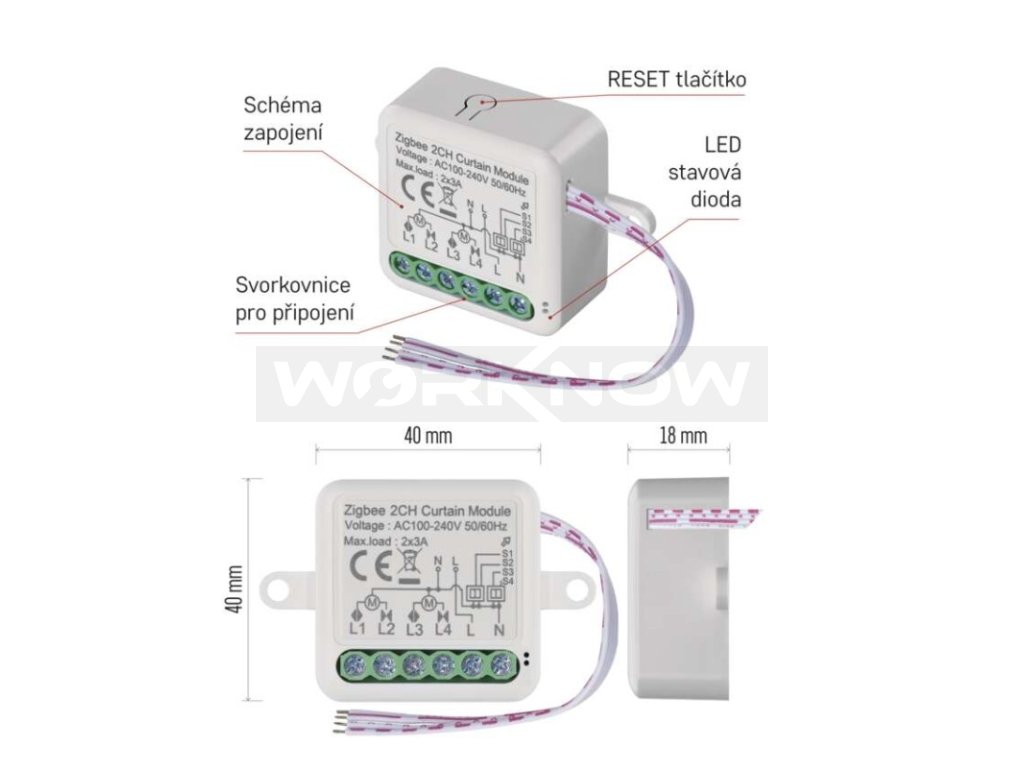 - Párování a ovládání modulu pomocí vlastní aplikace přes Zigbee bránu (není součástí dodávky)