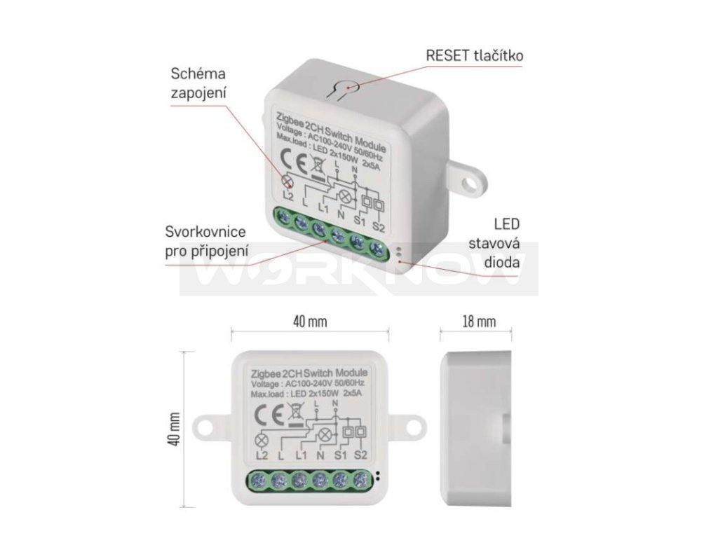 - Párování a ovládání modulu pomocí vlastní aplikace přes Zigbee bránu (není součástí dodávky)