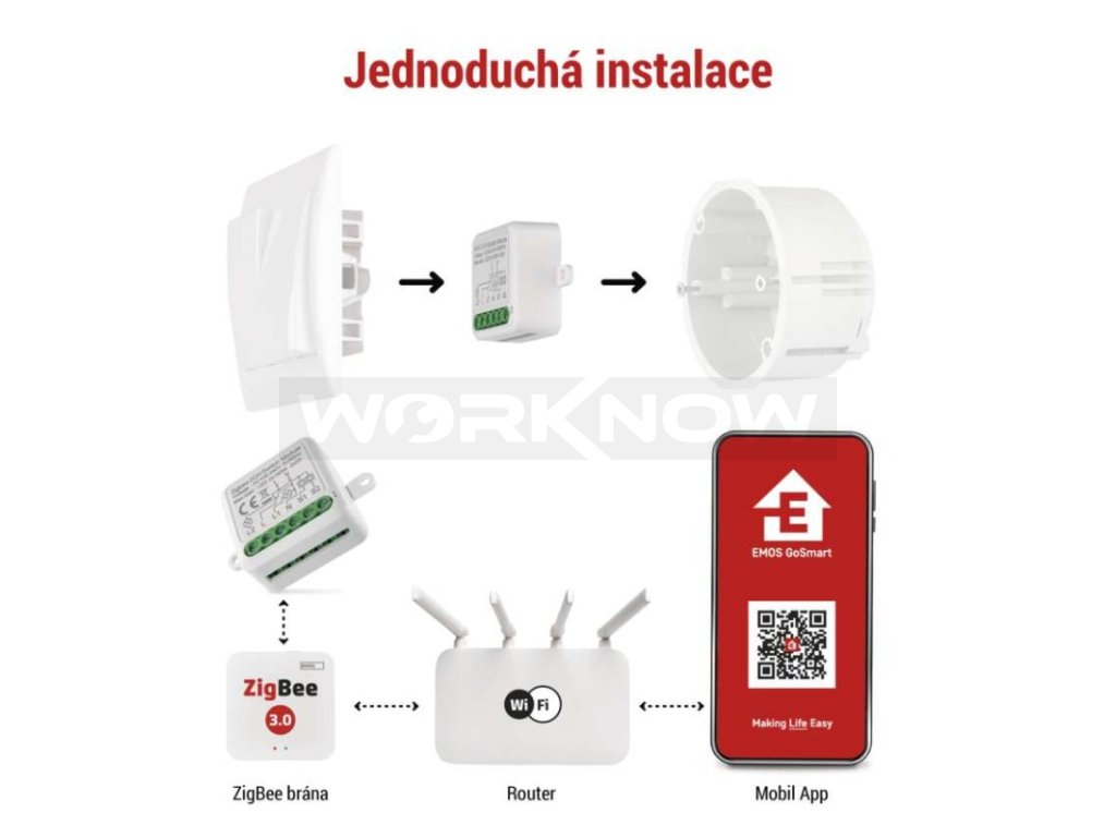 Modul propojte se ZigBee bránou a spárujte ho s mobilní aplikací EMOS GoSmart, která je dostupná pro Android i iOS. Díky tomu, že jsou moduly trvale napájeny, fungují zároveň jako prodlužovač vašeho Zigbee signálu, díky čemu můžete spravovat stále větší počet ZigBee zařízení v jedné síti.