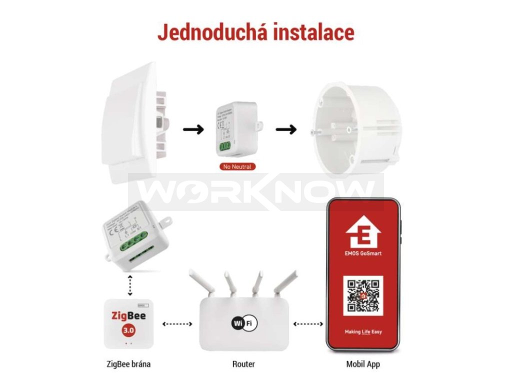 Modul propojte se ZigBee bránou a spárujte ho s mobilní aplikací EMOS GoSmart, která je dostupná pro Android i iOS. Díky tomu, že jsou moduly trvale napájeny, fungují zároveň jako prodlužovač vašeho Zigbee signálu, díky čemu můžete spravovat stále větší počet ZigBee zařízení v jedné síti.