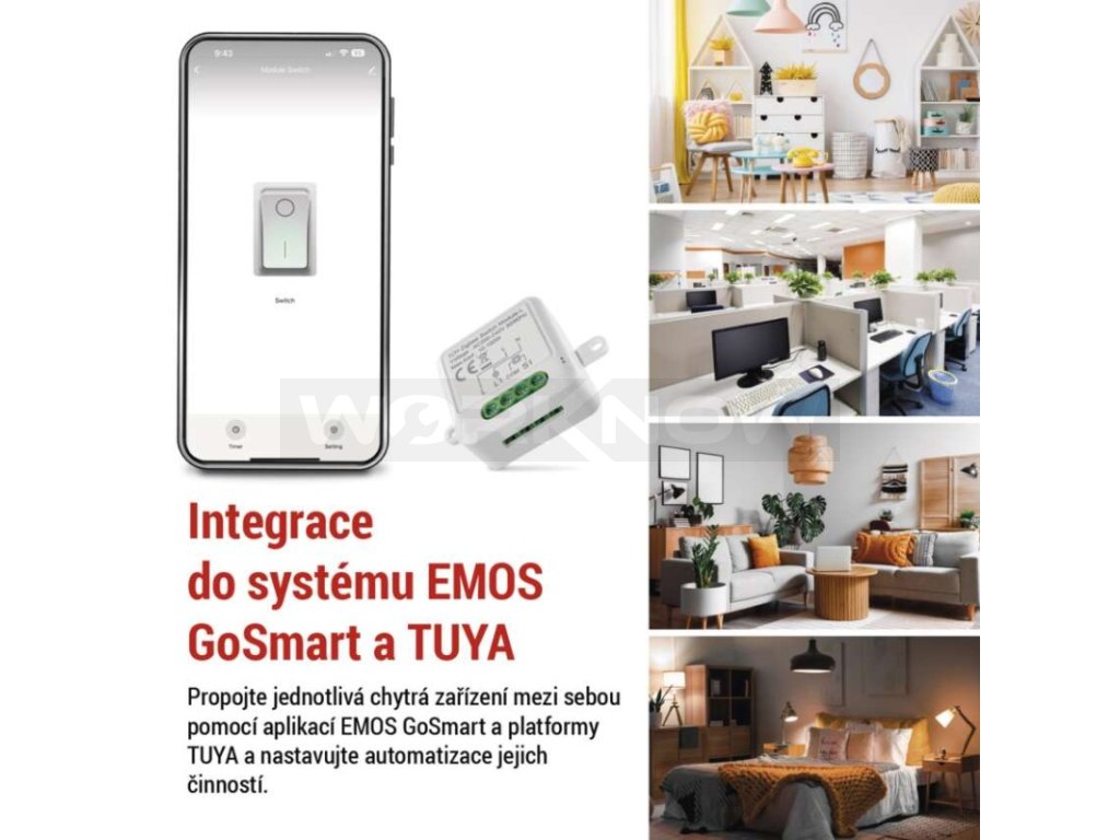 Chytrý modul lze propojit s dalšími zařízeními ve vaší domácnosti (hodiny, světla, čidla dveří, oken, topení). Po spárování s mobilní aplikací EMOS GoSmart můžete automatizovat a plánovat časy pro jednotlivé spotřebiče. Například automatické rozsvícení světel v době vaší dovolené. Vytvořte si chytrou domácnost, která se přizpůsobí vašim potřebám.