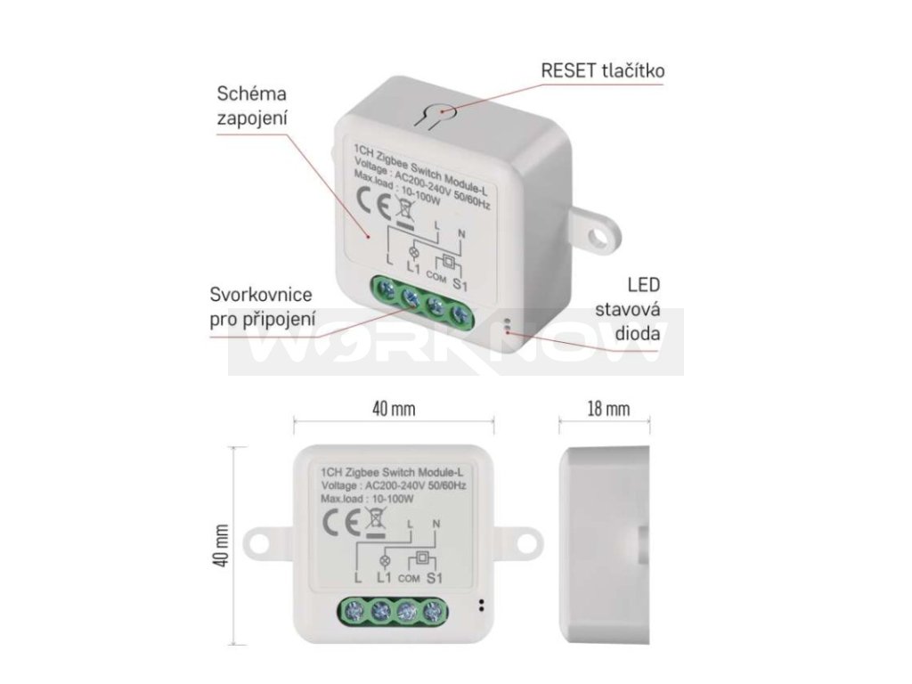 - Párování a ovládání modulu pomocí vlastní aplikace přes Zigbee bránu (není součástí dodávky)