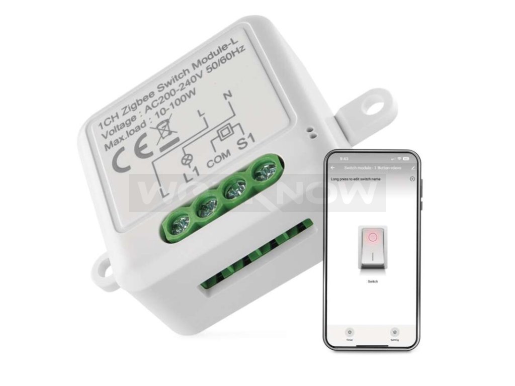 - Připojení spínače nevyžaduje přítomnost nulového N vodiče na místě zapojení