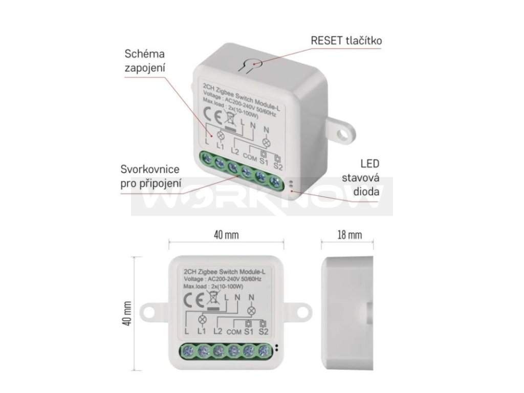 - Párování a ovládání modulu pomocí vlastní aplikace přes Zigbee bránu (není součástí dodávky)