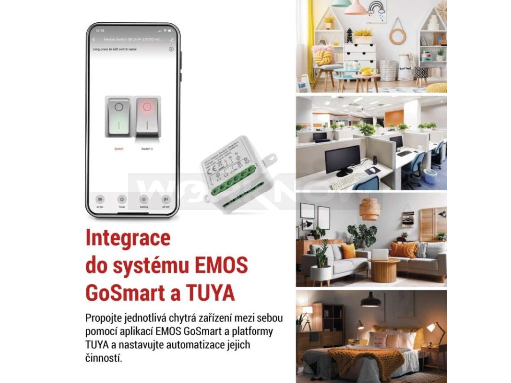 Chytrý modul lze propojit s dalšími zařízeními ve vaší domácnosti (hodiny, světla, čidla dveří, oken, topení). Po spárování s mobilní aplikací EMOS GoSmart můžete automatizovat a plánovat časy pro jednotlivé spotřebiče. Například automatické rozsvícení světel v době vaší dovolené. Vytvořte si chytrou domácnost, která se přizpůsobí vašim potřebám.