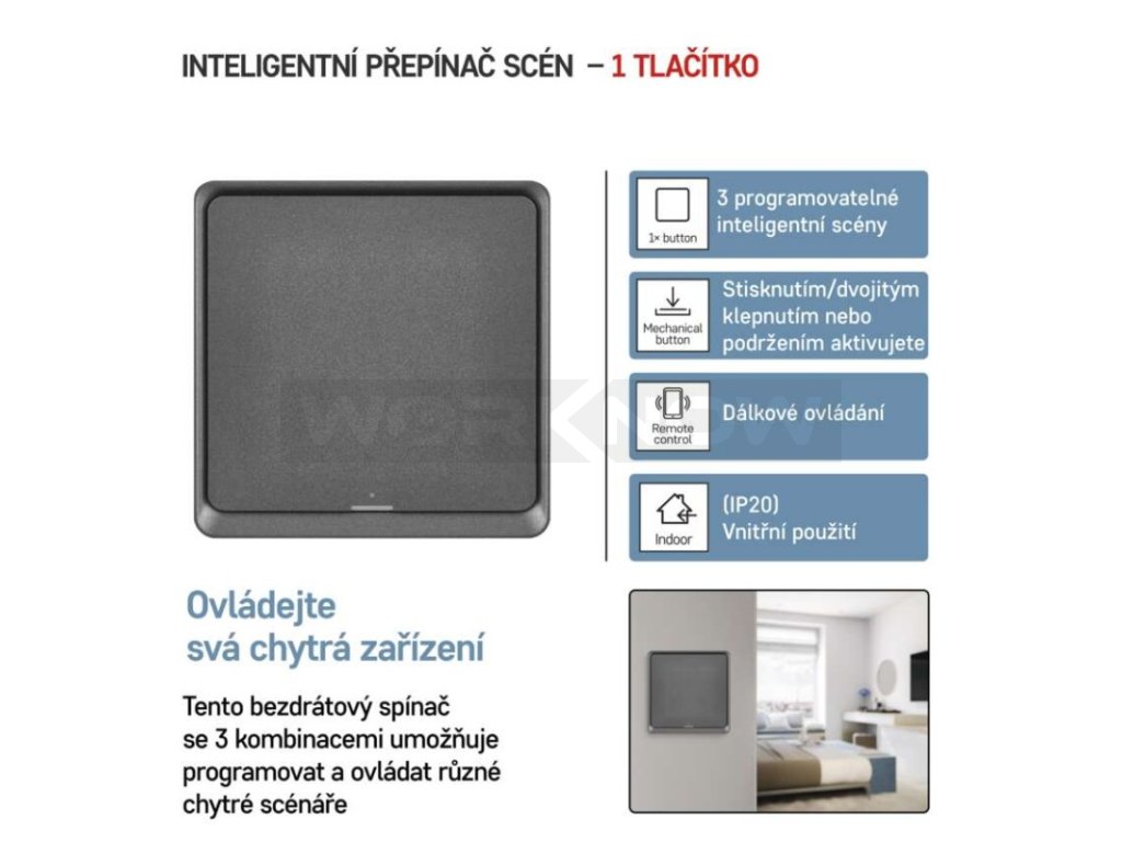GoSmart Přenosný ovladač scén IP-2001ZB, ZigBee 3.0, 1-tlačítkový