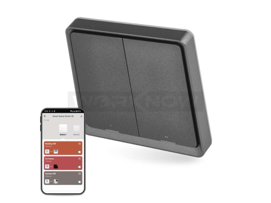 Každé z tlačítek navíc rozeznává tři polohy – standardní jednoduché stisknutí, dvojité klepnutí nebo podržení tlačítka po delší dobu. Vy tak získáváte celkem 6 kombinací, jak si nastavit a pohodlně ovládat vaši domácnost.