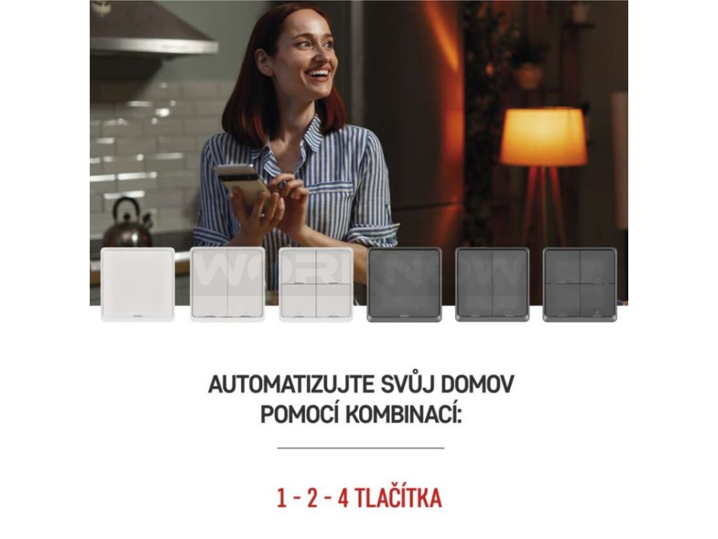 Každé z tlačítek navíc rozeznává tři polohy – standardní jednoduché stisknutí, dvojité klepnutí nebo podržení tlačítka po delší dobu. Vy tak získáváte celkem 12 kombinací, jak si nastavit a pohodlně ovládat vaši domácnost.
