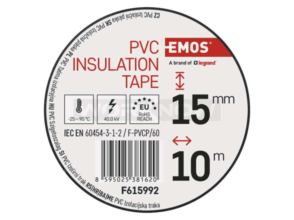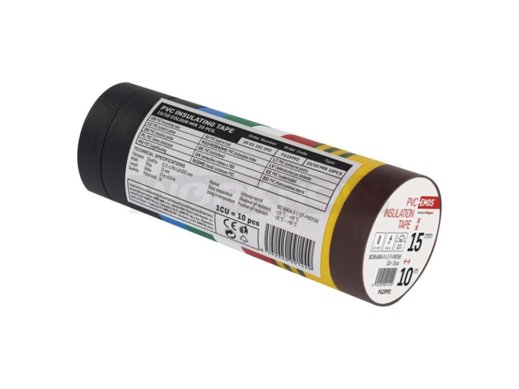 Izolační elektro páska s délkou 10 m a šířkou 15 mm je vyrobena z plastifikovaného PVC materiálu. Její lepidlo z kaučuku zajišťuje silnou lepivost a přilnavost.