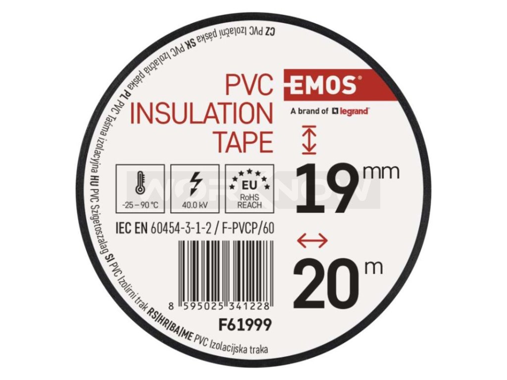 Izolační elektro páska s délkou 20 m a šířkou 19 mm je vyrobena z plastifikovaného PVC materiálu. Její lepidlo z kaučuku zajišťuje silnou lepivost a přilnavost.