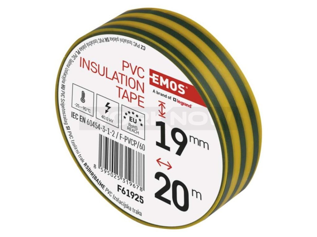 Izolační elektro páska s délkou 20 m a šířkou 19 mm je vyrobena z plastifikovaného PVC materiálu. Její lepidlo z kaučuku zajišťuje silnou lepivost a přilnavost.