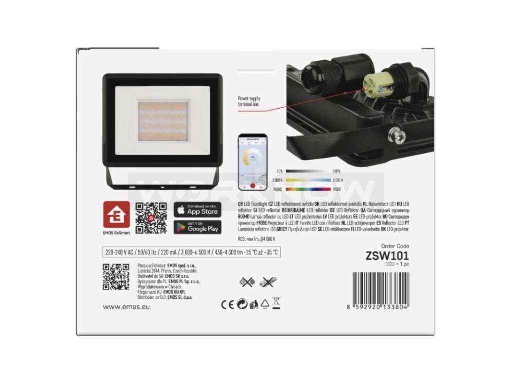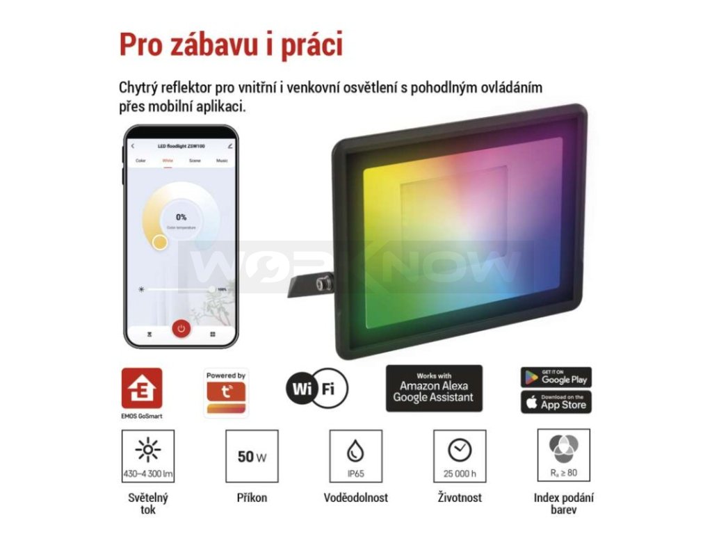 GOSMART LED reflektor 50W, 4300 lm, RGB+CCT, IP65