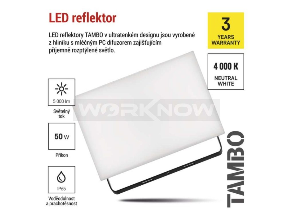 LED reflektor TAMBO, 50 W, 5000 lm, IP65, černý