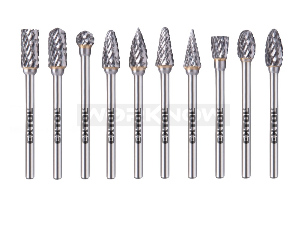 Frézy karbidové, sada 10ks, ⌀6x13mm, ⌀stopky 3mm, sek střední (double-cut)