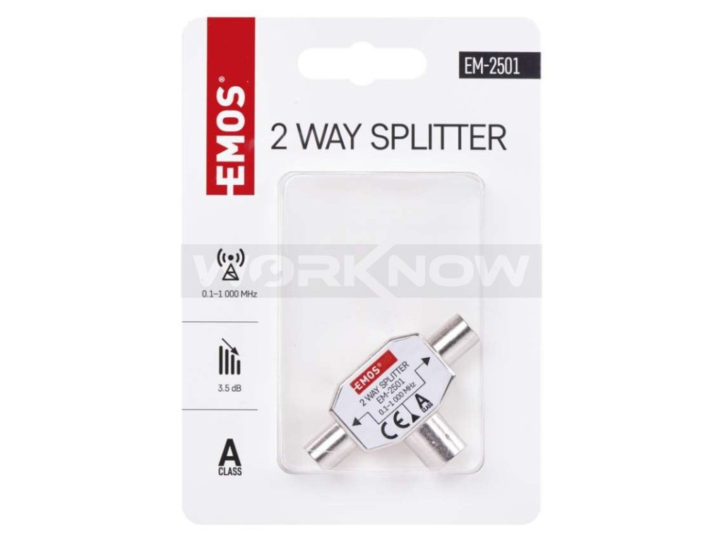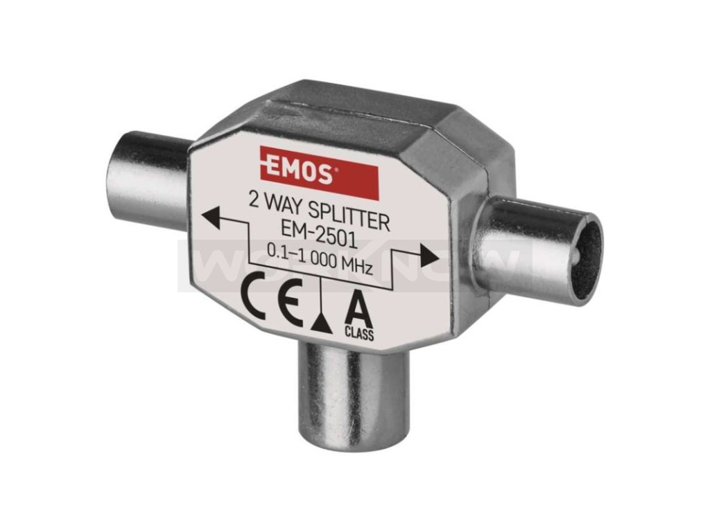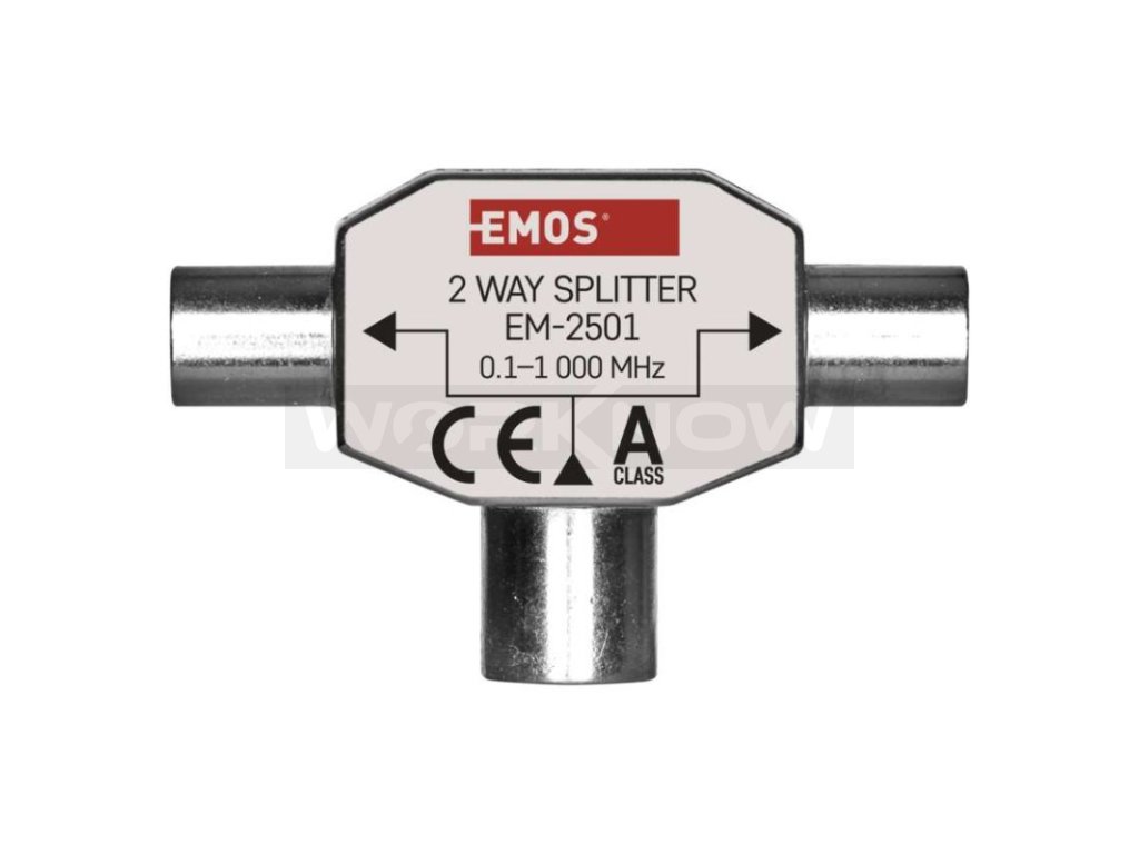 Univerzální feritový rozbočovač EU 2501/D194. Rozbočovač se využije v případech kdy např. chcete zapojit dva televizory do jedné účastnické zásuvky. Funguje i v opačném směru jako slučovač.