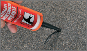 Pomocí střešního bitumenového tmelu proveďte dotěsnění záplaty.