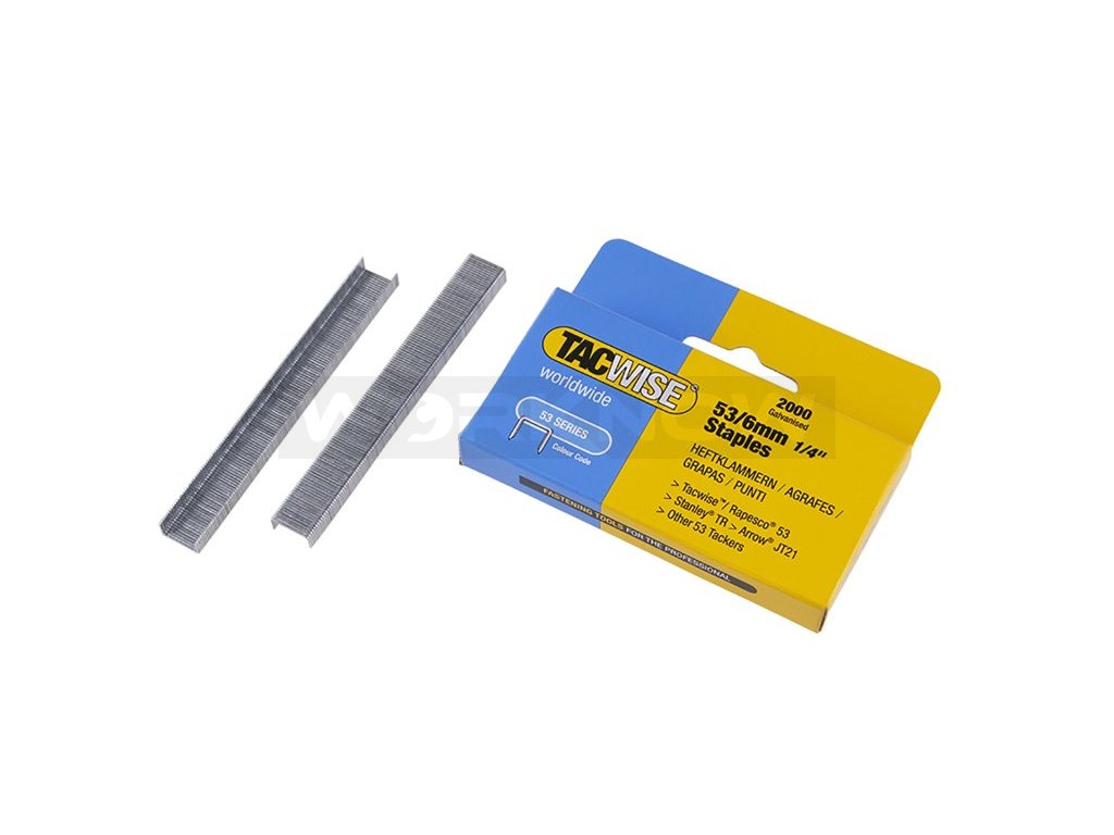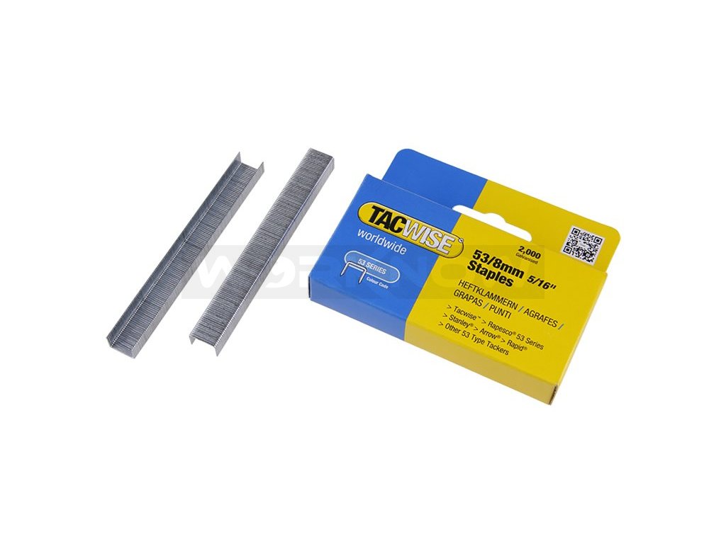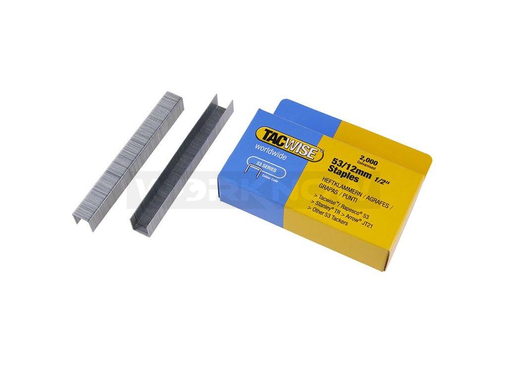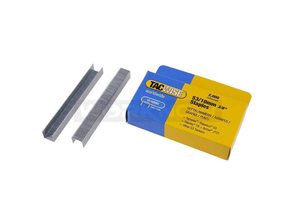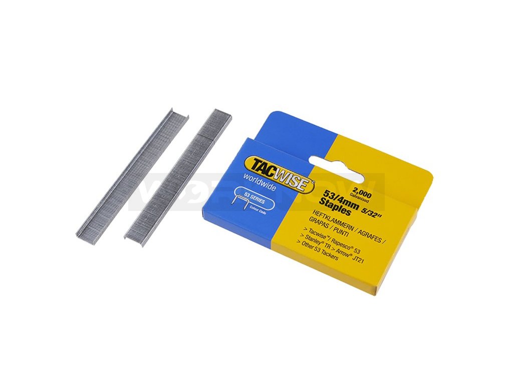 Kvalitní spony typ 53, šíře 11,3 mm, tl.0,7 mm. Vhodné pro sponkovačky Tacwise, Rapesco 53, Stanley TR, Arrow JT21 a jiné sponkovačky na spony typu 53.Vyrobeno v EU