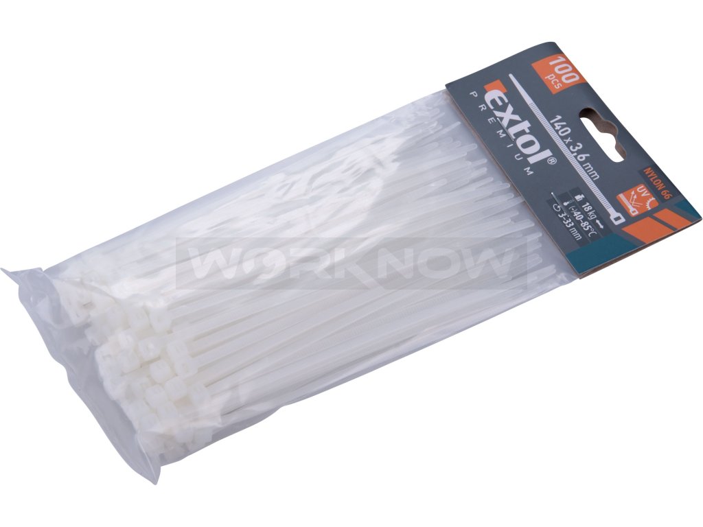 Pásky stahovací na kabely bílé, 140x3,6mm, 100ks, nylon PA66