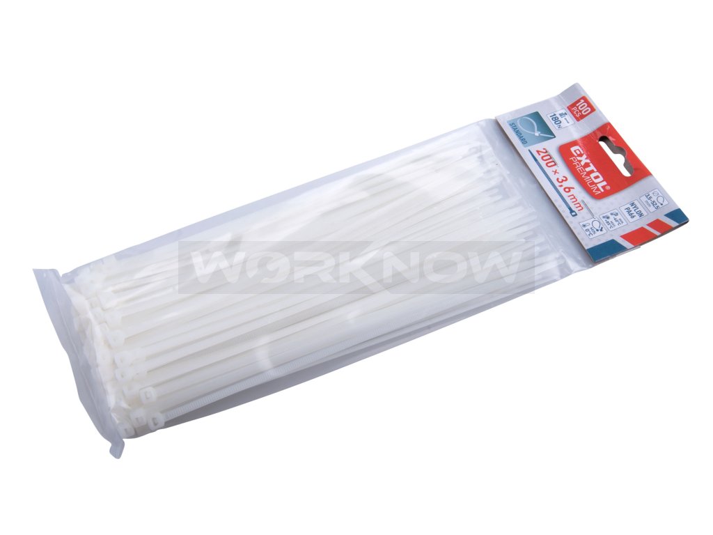 Pásky stahovací na kabely bílé, 200x3,6mm, 100ks, nylon PA66