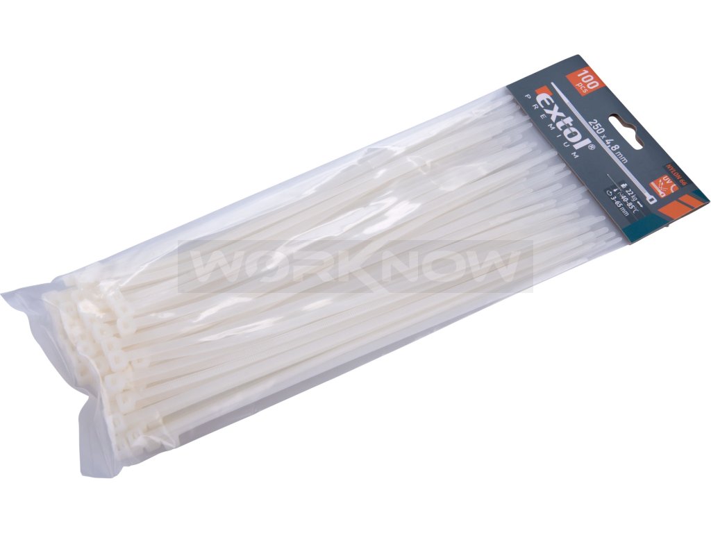Pásky stahovací na kabely bílé, 250x4,8mm, 100ks, nylon PA66