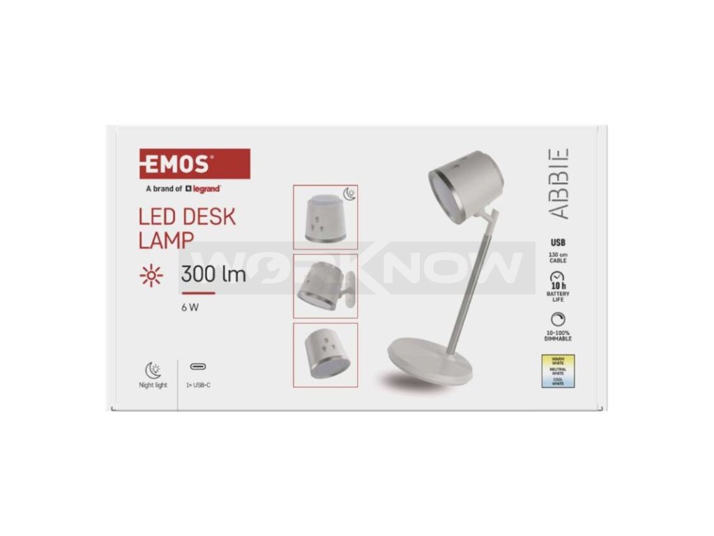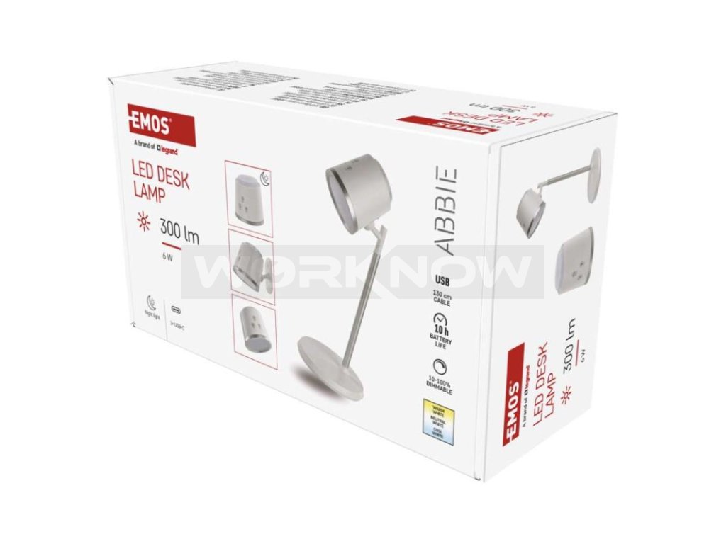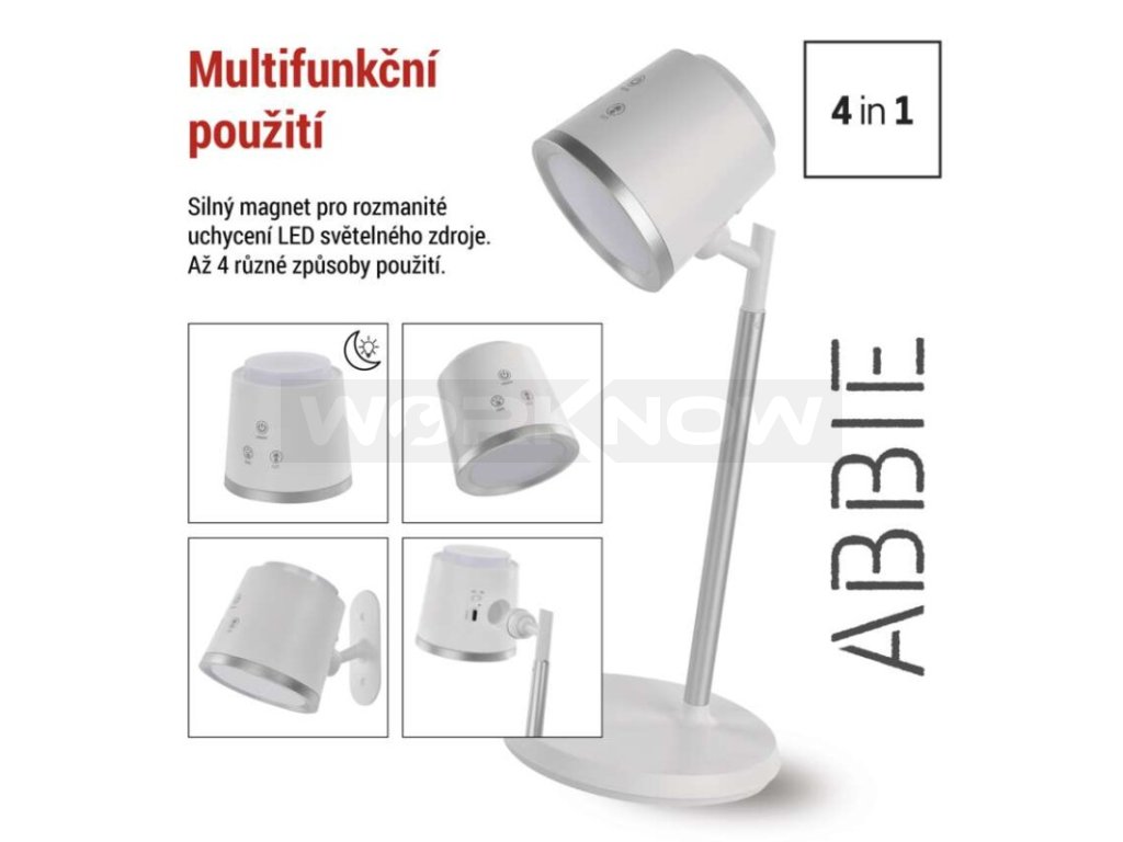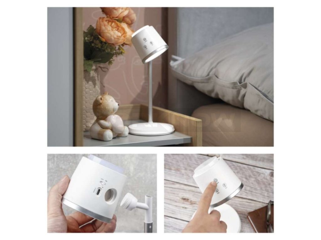 LED stolní lampa ABBIE, nabíjecí, bílá
