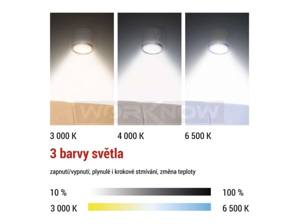 teplota chromatičnosti: 3 000/4 000/6 500 K