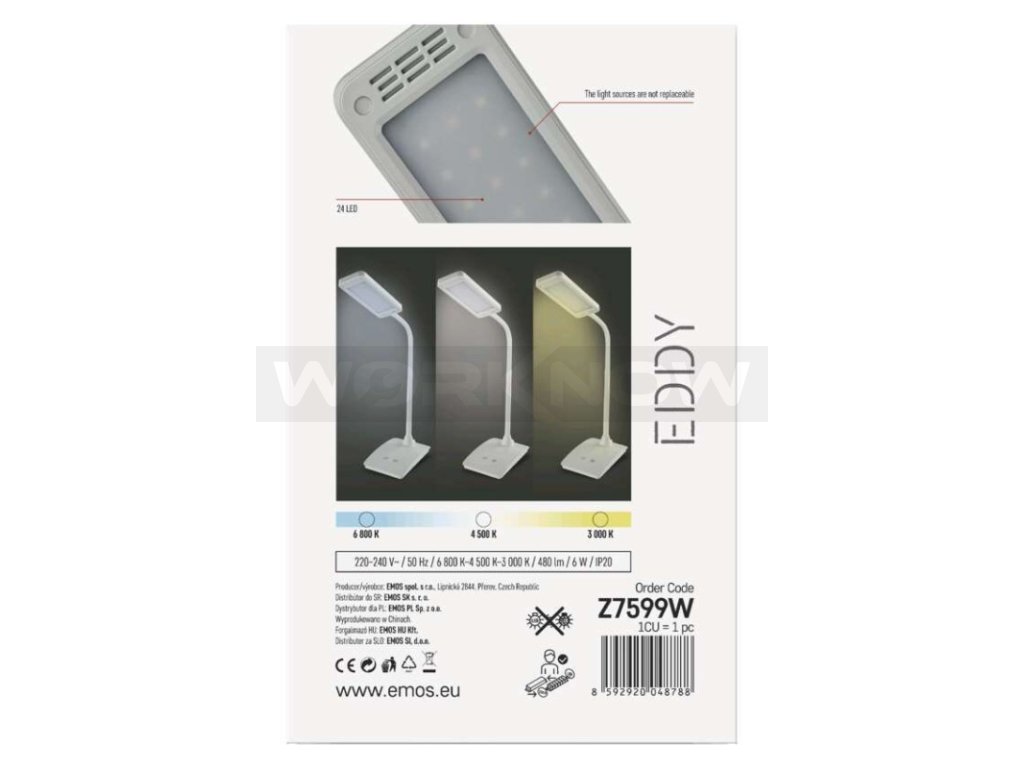 Stolní lampička EDDY přináší do vašeho prostoru špičkové osvětlení ve dvou moderních barvách – černé nebo bílé. S výkonem 6 W a 24 výkonnými LED diodami poskytuje světlo o intenzitě až 480 lm.