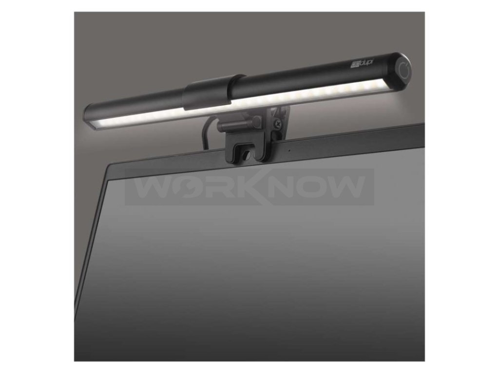šetří místo na pracovním stole- Speciální NO GLARE technologie, která osvítí pouze klávesnici a stůl (nesvítí na obrazovku a tím zbytečně nezatěžuje oči)- Napájení přímo z PC přes USB kabel (2 v 1 – USB A, USB C), který je chráněn textilním opletením (součástí balení)- Jednoduchá a rychlá instalace- Elegantní černé provedení- Součástí balení příslušenství k upevnění a také praktický pytlík na cesty- Vhodné na monitory s tloušťkou 1–15 mm- Praktický výřez na web kameru- Komfort při práci i mimo domov